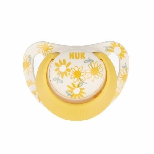 W zestawie znajduje się wytrzymałe pudełko wielokrotnego użytku do bezpiecznego i czystego przechowywania. Występuje w żółtym kolorze. Opakowanie zawiera 1 sz. silikonowego smoczka od 18-36m wraz z pudełkiem.