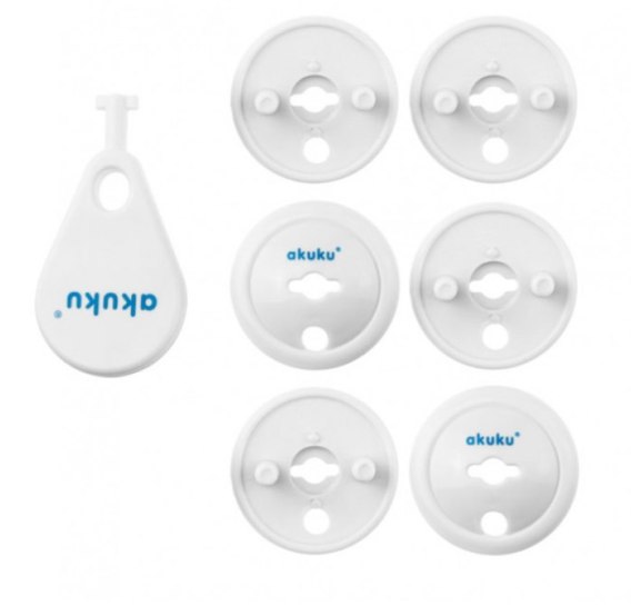 W skład zestawu wchodzi 6 szt. zabezpieczeń oraz 1 kluczyk do ich wyciągania.