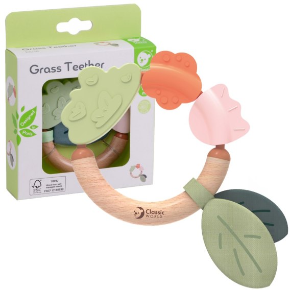 CLASSIC WORLD Drewniana Grzechotka Sensoryczna Gryzak 2w1