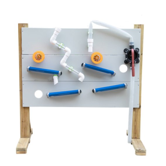 Zestaw do wodnego placu zabaw od renomowanej marki Classic World Edu jest wyprodukowany z wysokiej jakości drewna, pomalowany nie toksycznym impregnatem, w pełni bezpiecznym dla dzieci. Zestaw składa się na kompletną tablicę do zabawy wodą, piaskiem, piłeczkami a nawet samochodzikami. Tablica została skonstruowana w taki sposób aby dzieci mogły samodzielnie tworzyć układ i konfigurację rurek przewodzących wodę i innych elementów w zestawie. Tablica jest łatwa w demontażu i po złożeniu zajmuje mało miejsca.