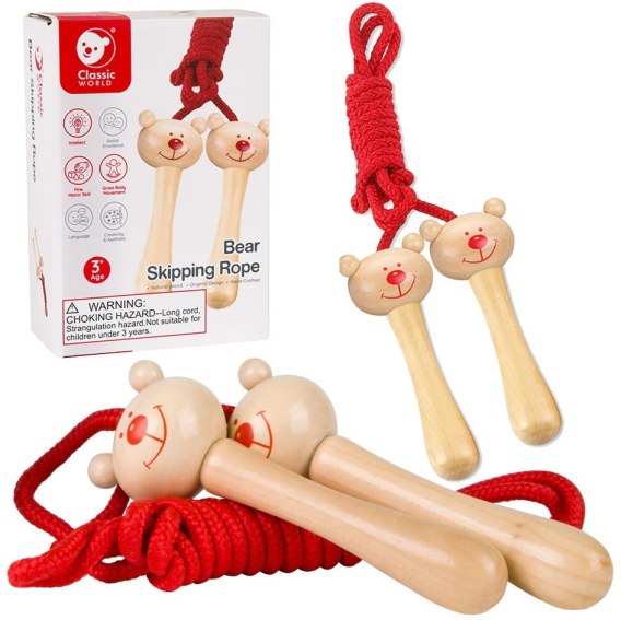 CLASSIC WORLD Skakanka Sznurkowa Czerwona Drewniane Rączki Miś 205cm