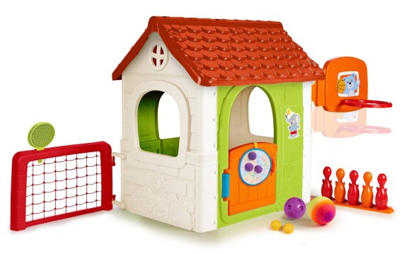 FEBER Dom Aktywności Wielofunkcyjny Domek 6 w 1 z Dołączonymi Grami to pierwszy domek do zabawy, który ma dołączone 6 gier, dzięki którym Twoja pociecha nie będzie wiedzieć co to nuda! Zestaw zawiera gry takie jak: kręgle, gry rakietowe, piłka nożna, koszykówka (z regulowanym koszem), tarcza do piłek na rzep. Po zakończonej zabawie można wszystko złożyć i nie ma bałaganu! Domek solidnie zbudowany, bardzo łatwy w montażu. Dodatkowo wyposażony w system ochronny przed promieniowaniem UV chroniący kolor przed wyblaknięciem. Przeznaczony dla dzieci powyżej 3 roku życia.