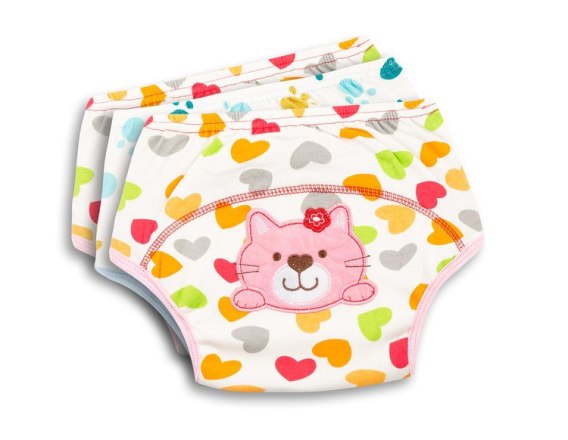 Majtki treningowe z ozdobnym haftem ułatwiają naukę czystości. Przydają się szczególnie podczas ostatniej fazy odpieluchowywania. Doskonale nadają się także na pierwszą parę "prawdziwej" bielizny, pomagając w nauce samodzielnego ubierania się. Wykonane z delikatnej i przewiewnej bawełny.