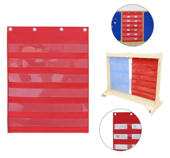 MASTERKIDZ Materiałowy Arkusz Do Wieszania Z Kieszonkami Na Fiszki I Obrazki Czerwony