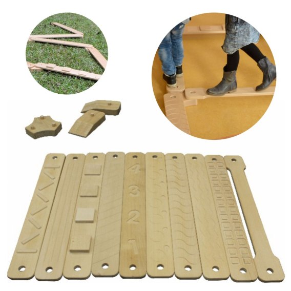 Zestaw składa się z 10 deseczek różnego rodzaju, oraz elementów do montażu na podwyższeniu.