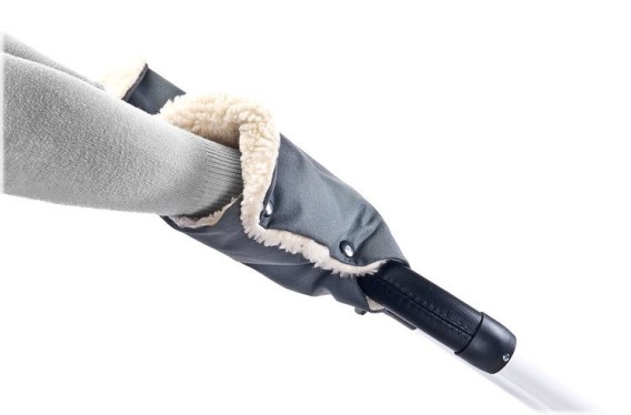 Jesienno-zimowy spacer z wózkiem wiąże się z narażeniem dłoni na działanie wiatru, deszczu i śniegu. Rękawiczka/mufka do wózka jest receptą na te niedogodności. Chroni dłonie przed niekorzystnymi czynnikami atmosferycznymi i ułatwia opiekę nad maleństwem - nie trzeba już na przemian zakładać i zdejmować rękawiczek. Mufkę zapinamy napami, na rączkach wózka lub sanek, dzięki czemu utrzymuje dobrze swoje położenie. Z zewnątrz pokryta jest nieprzemakalnym materiałem, natomiast warstwę wewnętrzną stanowi miękki i cieplutki „baranek".