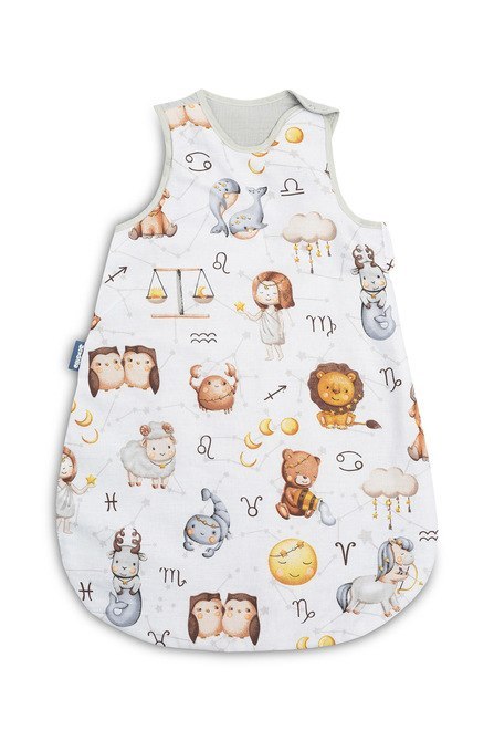 Śpiworek do spania będzie służył dzieciom już od pierwszych dni życia (0-9 miesięcy) zapewniając im ciepło i bezpieczeństwo. Uszyty jest z miękkiej bawełny wypełnionej otuliną. Wnętrze i tył śpiworka są wykonane z bawełny muślinowej. Produkt nie zawiera twardych elementów, które mogłyby podrażnić skórę dziecka. Wyposażony jest w dwustronny zamek błyskawiczny, poprowadzony wokół śpiworka, pozwalający na zmianę pieluchy bez wyciągania dziecka ze śpiworka.