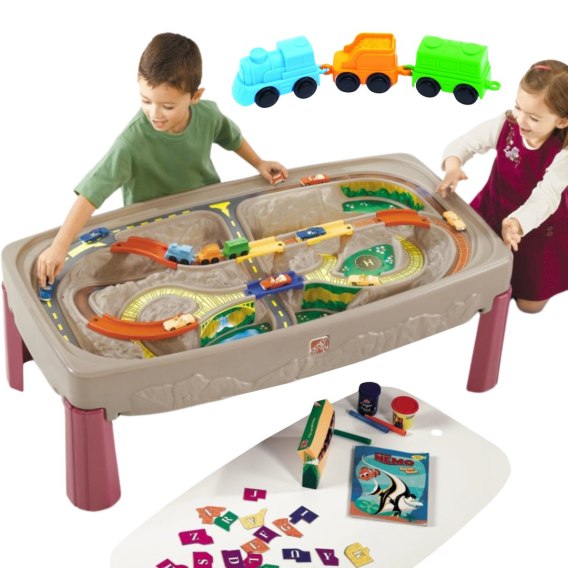 Stół na samochodziki kanion z blatem to duży rozbudowany stół renomowanej amerykańskiej firmy STEP2 to świetna zabawka, stwarzająca dziecku wiele możliwości do zabawy resorakami i innymi pojazdami. Posiada wielopoziomowy, uformowany tor i nieusuwalne mostki, dzięki czemu już nigdy nie będziesz musiał resetować toru dla swoich dzieci! Pomoże to małym konduktorom rozwinąć ich umiejętności społeczne, gdy będą dzielić pociągi i tory z towarzyszami zabaw i rodzeństwem. Gładka pokrywa przekształca go w stół do rękodzieła i przekąsek.