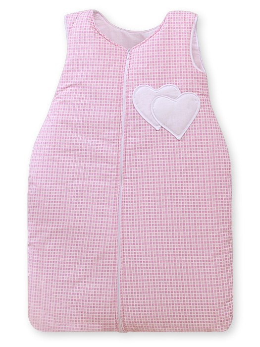 Śpiworek dla dzieci bawełniany M 6-12 mcy TOG 2.5 całoroczny ocieplany serduszka kratka różowa