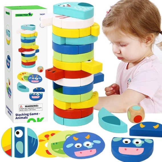 Gra Zwierzęta od marki TOOKY TOY to gra zręcznościowa dla dzieci od 3 roku życia. Wymaga od twojej pociechy skupienia i logicznegomyślenia. W zestawie znajduje się klocki przedstawiające różne zwierzęta, karty ze zwierzęciem oraz kostka. Po wylosowaniu koloru i odpowiedniegozwierzęcia z karty, dziecko musi wyciągnąćjeden z klocków z właściwego miejsca. Celem gry jest, aby wyjąć jak najwięcej klocków bez zburzenia wieży. Produkt ekologiczny w 100% bezpieczny dla środowiska oraz naszego malucha. Elementy zostały wykonane z myślą o małych rączkach dziecka. Zestaw przyciąga wzrok żywymikolorami oraz ilustracjamizwierząt. Klocki charakteryzują się solidnym wykonaniem. Gra, mimo swojej prostoty, na pewno dostarczy fantastycznych wrażeń dla dziecka i jego przyjaciół!