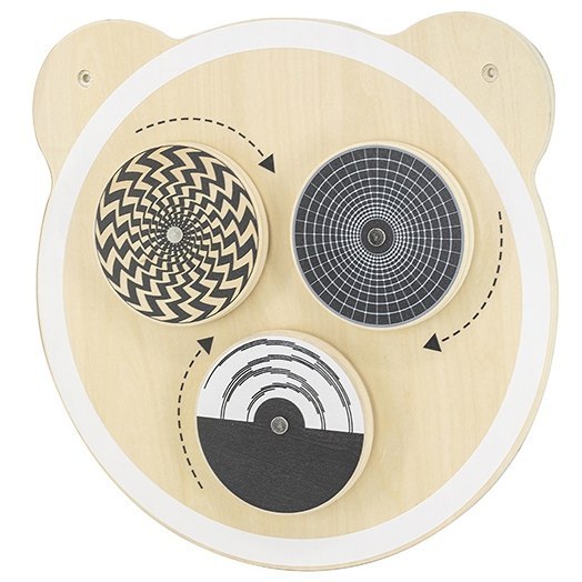 Jedna z serii drewnianych tablic z uroczą głową misia. Tablica z trzema kółkami, które zostały odpowiednio pomalowane, aby poprzez kręcenie wywoływać złudzenia optyczne. Zabawka pomaga w rozwijaniu logicznego myślenia u dzieci, pomaga również w rozwijaniu wyobraźni. Produkt idealnie sprawdzi się zarówno w domowym zaciszu, jak i w placówkach oświatowych, wczesnoszkolnych. Ciekawe przygotowanie formy tablicy z pewnością przykuje uwagę każdego malucha. Całość wykonana została z drewna lakierowanego i pomalowana nietoksycznymi farbami w żywe barwy, które zadowolą każdego użytkownika i dadzą mnóstwo radości z zabawy. Produkt przeznaczony dla dzieci od 18 miesiąca życia. W naszej ofercie dostępna jest cała seria tablic z głową misia.