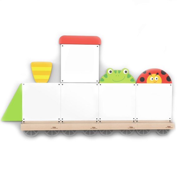 System tablic edukacyjnych od marki Viga, zaprojektowany jak kolorowy pociąg, zachęca dzieci do kreatywnej zabawy. Tablice suchościeralne i magnetyczne mogą być używane do rysowania, pisania oraz przyklejania magnetycznych liter i cyfr, rozwijając umiejętności manualne i intelektualne. Pociąg z tablicami to nie tylko narzędzie edukacyjne, ale także inspiracja do wymyślania historii i odkrywania nowych możliwości zabawy, stymulując wyobraźnię i zdolności poznawcze najmłodszych. Wbudowana półka pomaga utrzymać porządek, gwarantując, że wszystkie akcesoria są zawsze pod ręką.