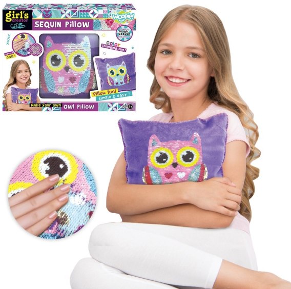 Poduszka do zdobienia od marki Woopie to wyjątkowy zestaw kreatywny, który zapewnia dzieciom godziny twórczej zabawy i niesamowitą radość z tworzenia własnej poduszki z motywem sowy i rozwija zdolności artystyczne, kreatywność i poczucie estetyki. Dzięki kolorowym, błyszczącym cekinom dziecko może tworzyć wzory i zmieniać je za każdym przesunięciem dłoni. Odwracalne cekiny pozwalają na natychmiastową zmianę koloru i wzoru poduszki! Zestaw idealnie łączy elementy zabawy i edukacji. Poduszka ma kształt kwadratu i jest ozdobiona motywem uroczej, kolorowej sowy - ten wzór przyciąga wzrok i zachęca do zabawy. Produkt wykonano z miękkiego, przyjemnego w dotyku materiału, który zapewnia komfort użytkowania zarówno podczas zabawy, jak i odpoczynku. Zabawka została zaprojektowana z myślą o bezpieczeństwie - bez ostrych elementów, wykonana z materiałów wysokiej jakości.