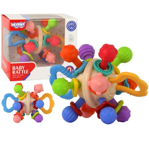 Kolorowa Grzechotka w Kształcie Piłki od marki WOOPIE to idealna zabawka dla najmłodszych, wypełniona drobnymi koralikami i zaprojektowana z myślą o niemowlętach. Kształt i wielkość zostały dostosowane do umiejętności i potrzeb dzieci, a każdy z okręgów obraca się, wydając charakterystyczny dźwięk. Uchwyty grzechotki są wykonane z gumy, co zapewnia komfort użytkowania.