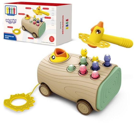 WOOPIE Gra Zręcznościowa Dzięcioł Wbijak Robaków 3w1 Wózek Ciągacz dla Niemowląt