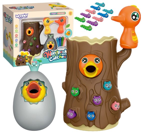Gra polega na nakarmieniu głodnego pisklaka robaczkami ukrytymi w pniu drzewa. Dziecko używa magnetycznych dziobów dzięciołów, aby "złapać" robaczki i przenieść je do pisklaka. Zabawa wymaga precyzji i skupienia, dzięki czemu dzieci mogą ćwiczyć sprawność manualną, a przy okazji świetnie się bawić. Po zakończeniu rozgrywki robaczki można wysypać z pnia i przygotować wszystko do kolejnej rundy