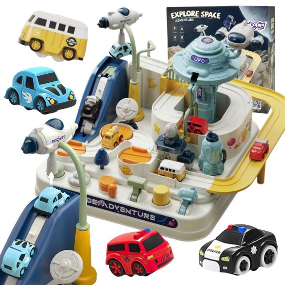 Interaktywny tor samochodowy "Kosmiczna Przygoda" to niezwykła zabawka, która przenosi dzieci do fascynującego świata kosmosu. Mali odkrywcy mogą wcielić się w role postaci eksplorujących kosmiczną bazę, jednocześnie pokonując różne przeszkody na torze samochodowym. Zabawka została wyposażona w mechaniczne dźwignie, wyrzutnie i interaktywne pokrętła, które dziecko musi obsługiwać manualnie, ćwicząc przy tym zręczność i koordynację. To idealne narzędzie do rozwijania wyobraźni i umiejętnościmanualnych, które jednocześnie dostarcza mnóstwo frajdy. Tor, zaprojektowany na wzór bazy kosmicznej, posiada wiele elementów, które sprawią, że dziecko poczuje się jak prawdziwy odkrywca kosmosu. Statki kosmiczne czy pojazd ufo dodadzą niesamowitego klimatu zestawowi, urozmaicając każdą zabawę.