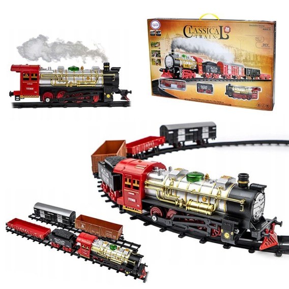 WOOPIE Klasyczny Pociąg Elektryczny Kolejka Tor Dźwięk Światło + 29 Akc.