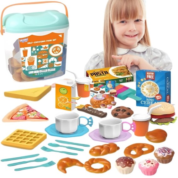 • Zawiera imitacje słodyczy, deserów, śniadań oraz zestaw do herbaty/kawy