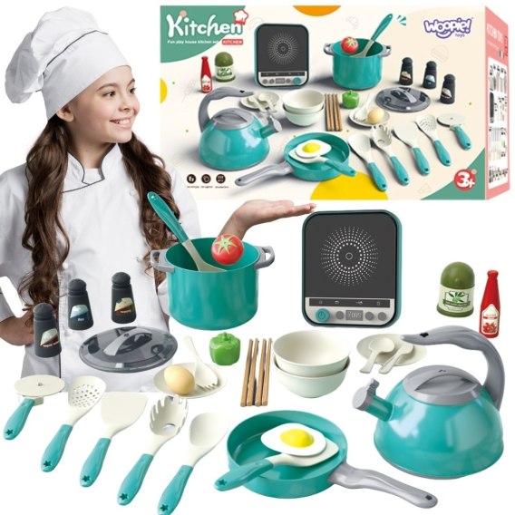 Ten obszerny zestaw do zabawy w kuchnię od marki Woopie to idealny prezent dla każdego małego kucharza! Zabawka pozwala dzieciom na naśladowanie dorosłych i odgrywanie ról, rozwijając ich kreatywność, wyobraźnię oraz zdolności manualne. Zestaw zawiera wszystko, czego potrzeba do przygotowania wymarzonego posiłku.W skład zestawu wchodzi aż 30 elementów, w tym garnki, patelnia z jajkiem sadzonym, czajnik, a nawet indukcyjna płyta grzewcza. Dodatkowe akcesoria, takie jak sztućce, warzywa, i przyprawy sprawiają, że zabawa staje się niezwykle realistyczna i wciągająca. To doskonały sposób na naukę przez zabawę, rozwijanie zdolności społecznych i spędzanie czasu z rodzicami.