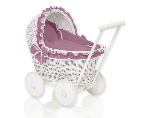 Wiklinowy Wózek Dla Lalek Pchacz Biały Z Pościelką Róż Retro I Miękką Wyściółką Chiara