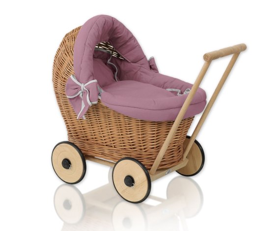Wiklinowy Wózek Dla Lalek Pchacz Z Pościelką Róż Retro I Miękką Wyściółką Stella - Naturalny