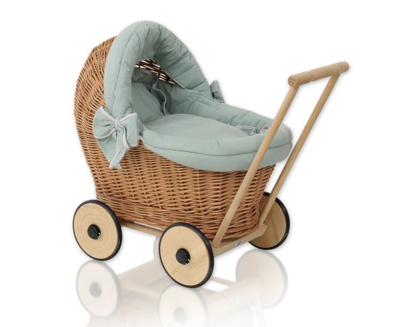 Wiklinowy Wózek Dla Lalek Pchacz Z Szałwiową Pościelką I Miękką Wyściółką Stella - Naturalny